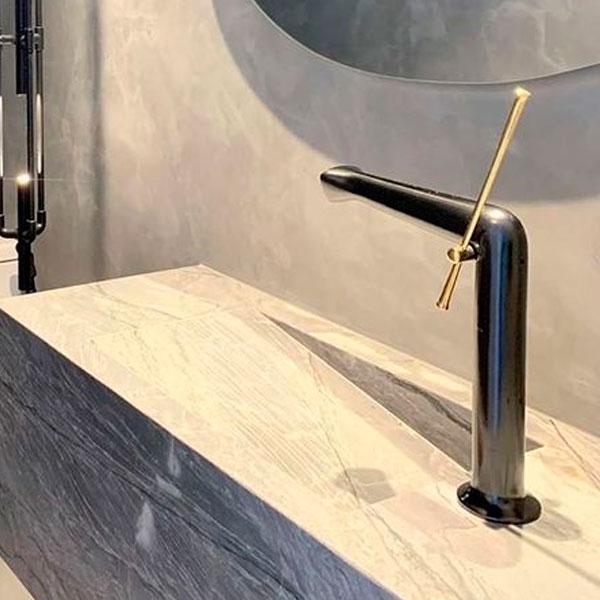 Grandes lâminas de pedra sinterizada, especialmente lapidadas para elevar o significado de arte.